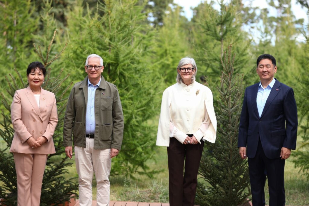 Ерөнхийлөгч У.Хүрэлсүх, гэргий Л.Болорцэцэг, Амбан захирагч Саманта Мостин, нөхөр Симеон Бэкэтт нар “Их тэнгэр” цогцолборт ард түмний найрамдал, нөхөрлөлийг бэлгэдэн дурсгалын мод тарилаа.