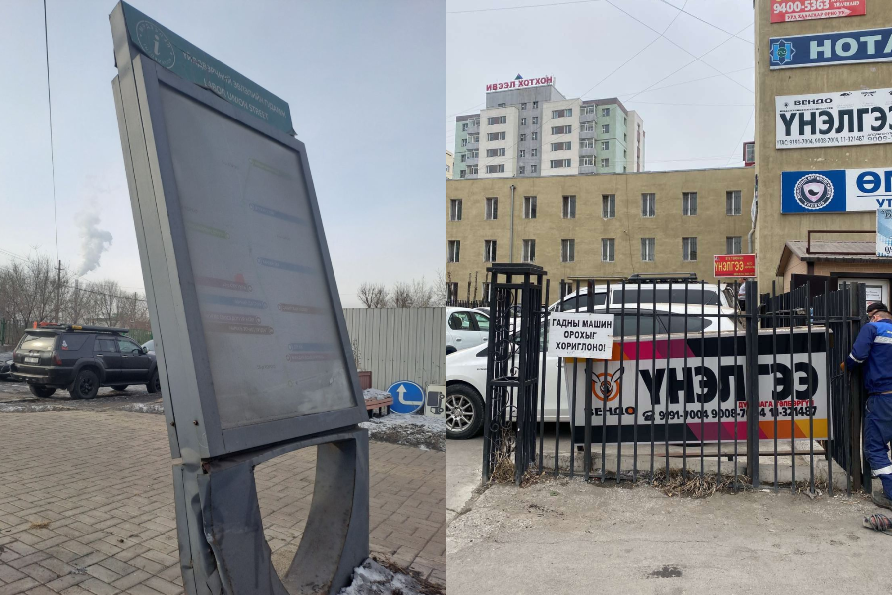 Нийслэлийн хэмжээнд нийт гадна хаяг, зар сурталчилгааны зөвшөөрөлтэй 496, зөвшөөрөлгүй 250 хаягийн байгууламж байдаг. Энэ хүрээнд стандартын шаардлага хангаагүй, өнгө үзэмжгүй, орчны аюулгүй байдал хангаагүй, харах орчин хязгаарласан, хяналтын камер халхалсан, хориглосон байршилд зөвшөөрөлгүй тавьсан зар сурталчилгааны байгууламж, рекламын самбаруудыг албадан буулгах ажлыг ирэх сараас эхлүүлнэ.