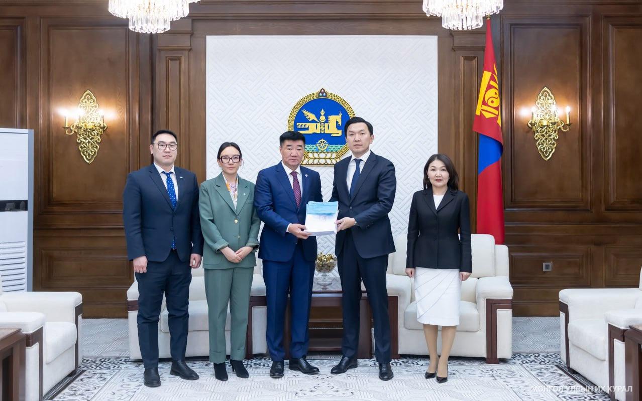 Монгол Улсын Их Хурлын дарга Н.Учралд (2025.12.30) Монгол Улсын Засгийн газрын гишүүн, Монгол Улсын сайд, Засгийн газрын Хэрэг эрхлэх газрын дарга С.Бямбацогт Татварын ерөнхий хуульд нэмэлт, өөрчлөлт оруулах тухай хуулийн төсөл болон уг хуулийн төсөлтэй холбогдуулан боловсруулсан бусад хуулийн төслүүдийг өргөн мэдүүллээ.