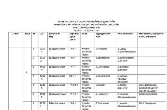 Түүний холбогдсон тус хэргийг БГД, ХУД, СХД-ийн Эрүүгийн хэргийн анхан шатны тойргийн шүүхэд энэ долоо хоногт хэлэлцэнэ гэсэн эх сурвалжийн мэдээлэл байна.