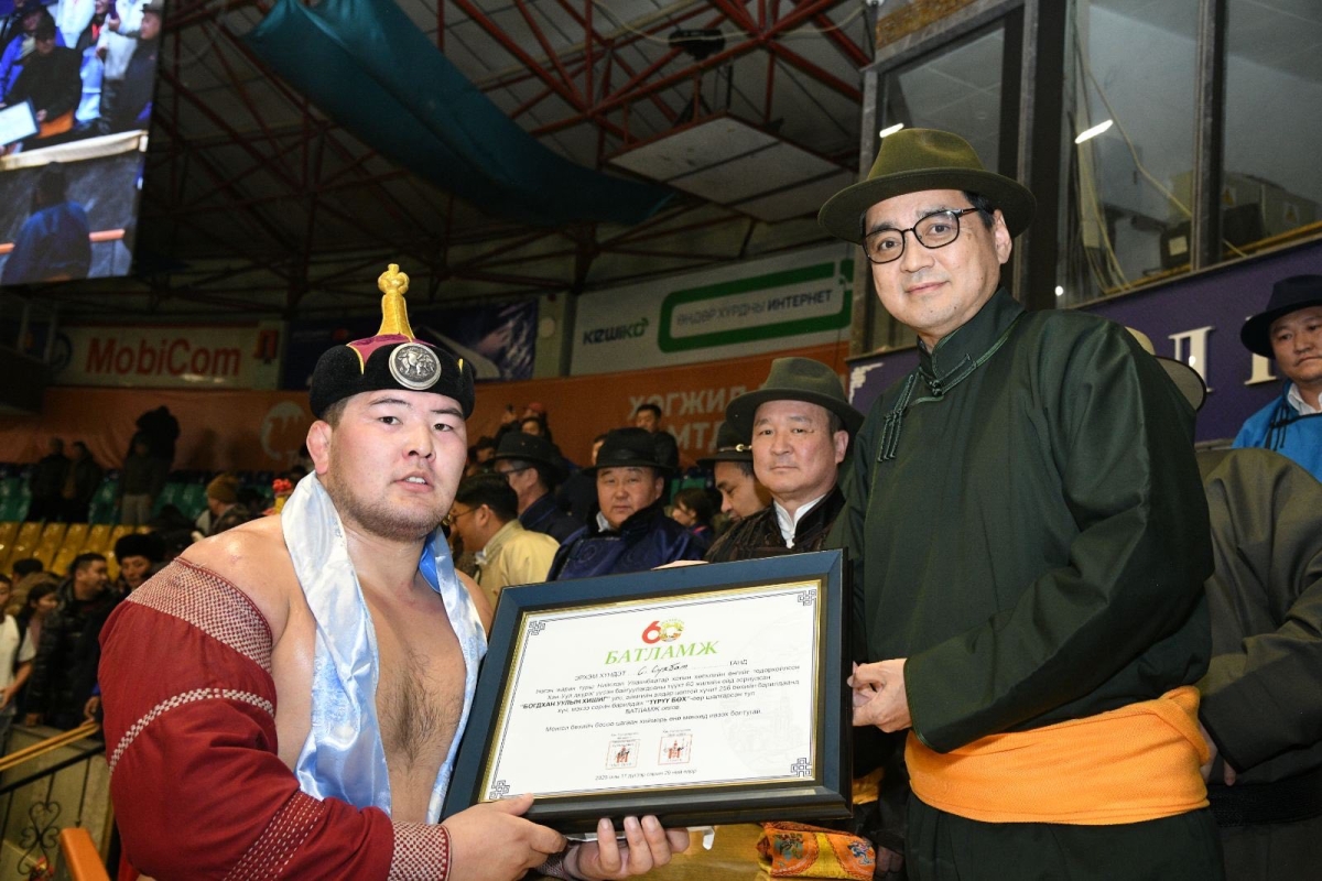 Хан-Уул дүүргийн түүхт 60 жилийн ойд зориулсан “БОГДХАН УУЛЫН ХИШИГ” түрүү, үзүүр, шөвгийн дөрвөн бөхийн шагналыг УИХ-ын гишүүн, УИХ дахь МАН-ын бүлгийн дэд дарга Ж.Алдаржавхлан, Хан-Уул дүүргийн ИТХ-ын дарга Ч. Бат-Оргил, Хан-Уул дүүргийн Засаг дарга Б.Цэрэн нар гардуулж, амжилт хүслээ.